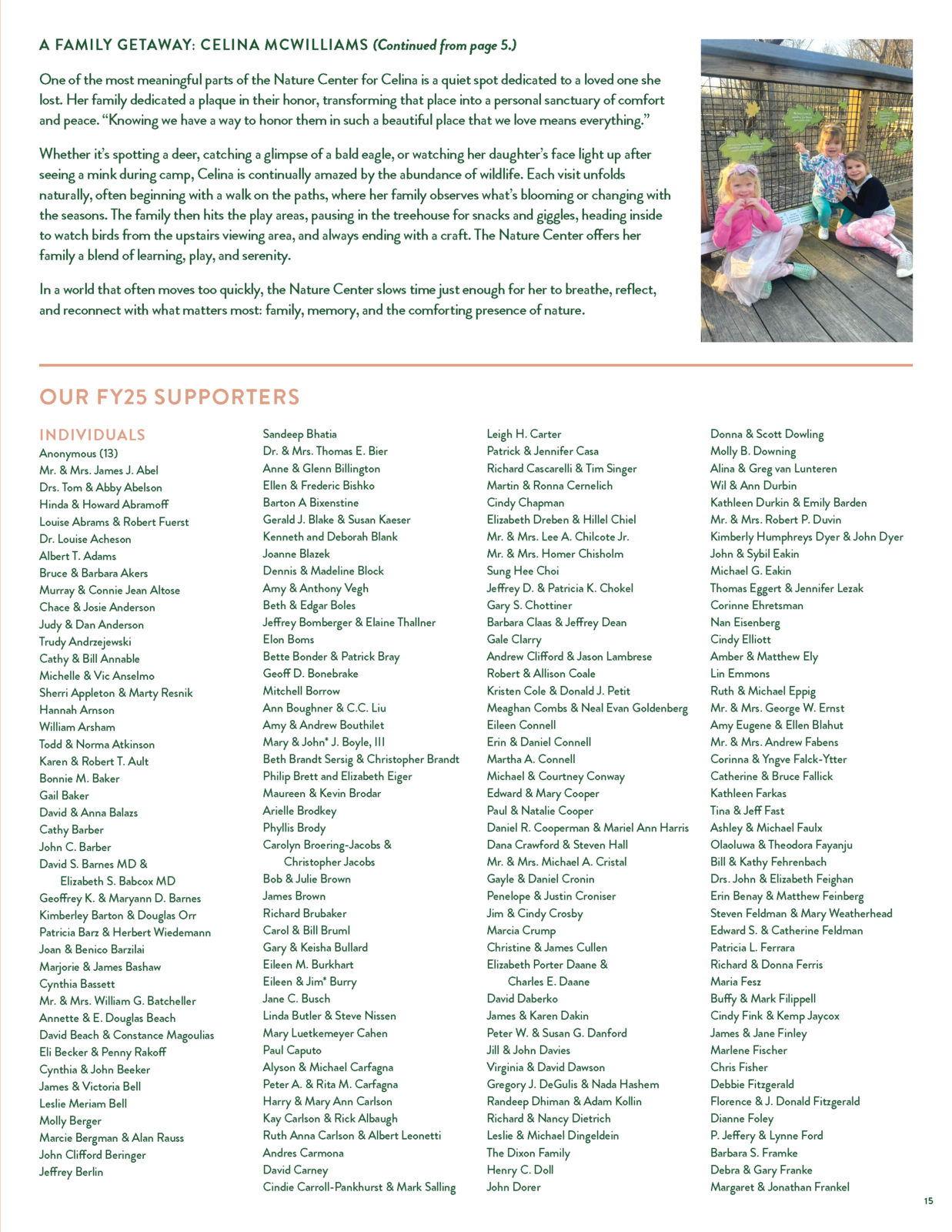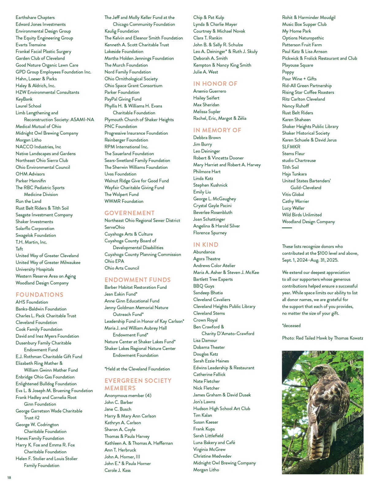 The Nature Center at Shaker Lakes extends its deepest appreciation to the many donors, members, and institutional supporters whose generous contributions helped ensure a successful year.
