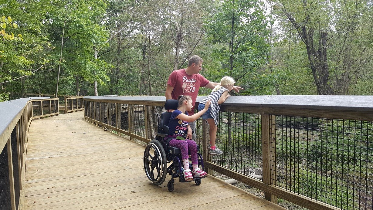 The newly renovated ADA accessible All Peoples' Trail, completed in November 2019, is an elevated 1/3 mile boardwalk that offers nature access for people of all abilities. It winds through the forest, over the Doan Brook, and overlooks our signature marsh and Lower Shaker Lake. The marsh is beautiful in all seasons, but during the height of summer you will be awed by the picturesque splendor of the large native blooms of the Marsh Rose Mallow. The new ADA-accessible Cleveland Foundation N. Woodland Trailhead connects the trail to the surrounding neighborhood trails and the Shaker Parklands.